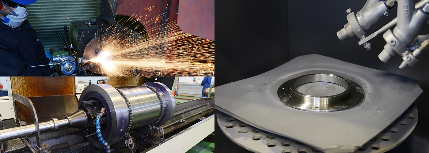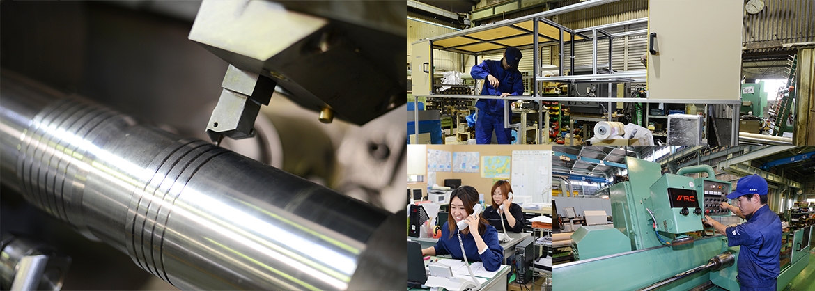 創業以来培ってきた硬質クロムめっきテクニックを軸に、円筒鏡面研削盤・大型CNC円筒研削盤・回転体釣合試験機・イオンプレーティング装置・溶射装置などを導入し、様々な業界で使用されている円筒形状機械部品の再生と高付加価値化を追及し、現在に至っています。